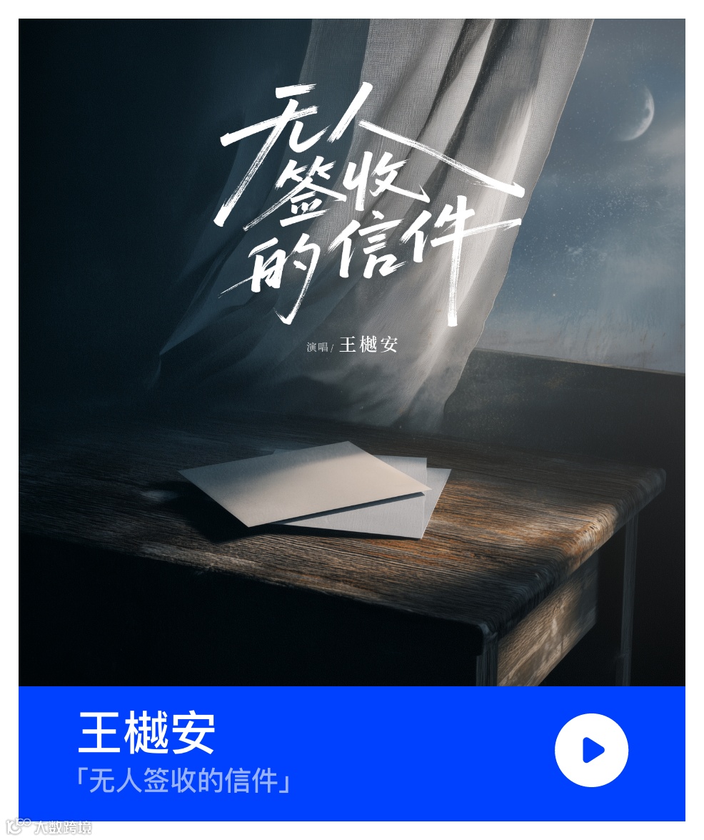 《无人签收的信件》以“未被接收的心绪”为切入口,编曲简洁、情感真挚。旋律在低声的起伏中展开,王樾安的声音像是在夜里低语,带着些许遗憾与希望交织的模样。歌词没有强烈的爆发,而是在缓慢的流动中积蓄情绪,让人感受到“被遗忘”与“还在等待”的并存。整首歌适合在静谧的夜晚聆听,让人安静下来去审视那些未曾寄出却真实存在的情感。