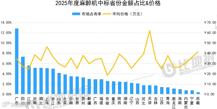 据比地招标网统计:2025年1-12月,麻醉机招投标市场有2192家采购单位,2086家中标单位,中标设备数量达7815台,中标总金额约24.96亿元。