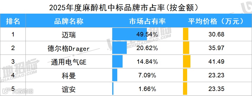 呼吸机:2025年度中标12048台,前3品牌迈瑞、德尔格、科曼市占70%