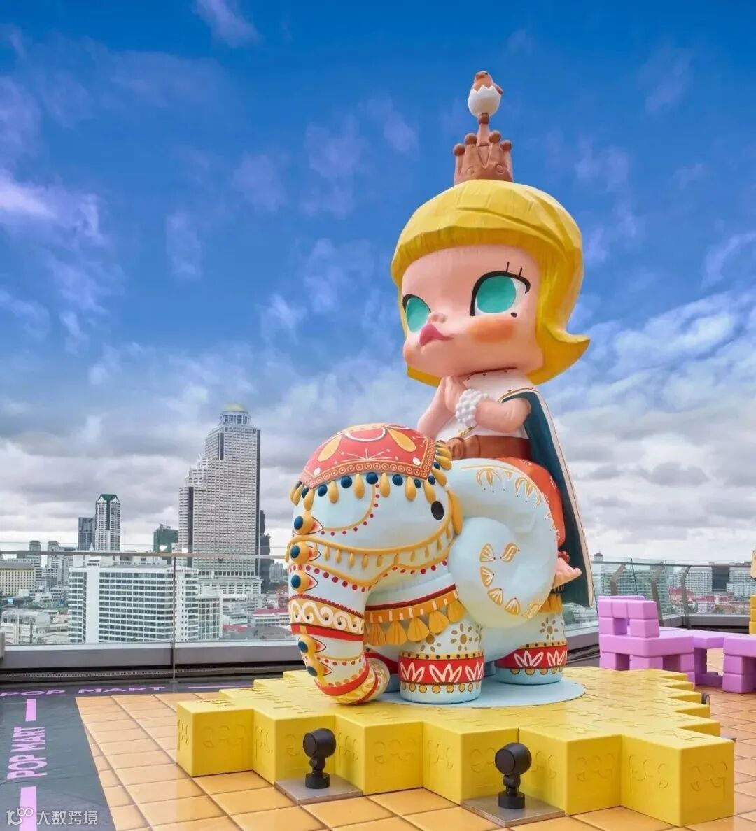 这次旗舰店门口4米高的MOLLY骑象雕塑,把MOLLY的IP形象和泰国的大象结合起来,成了视觉焦点。LABUBU长尾船系列参考了湄南河传统游船的造型和花纹,让文化元素以年轻的方式呈现。店内装饰用了泰式剪纸工艺和IP轮廓结合的设计,既保留了本地文化的辨识度,又符合潮玩的潮流风格。这种把文化元素巧妙转化的能力,让品牌在国外市场不会让人觉得是"外来的陌生人"。