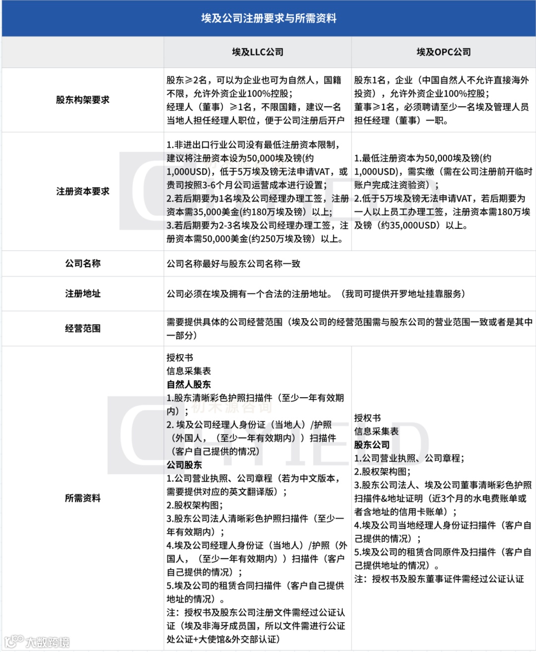 埃及LLC公司注册要求及所需文件: