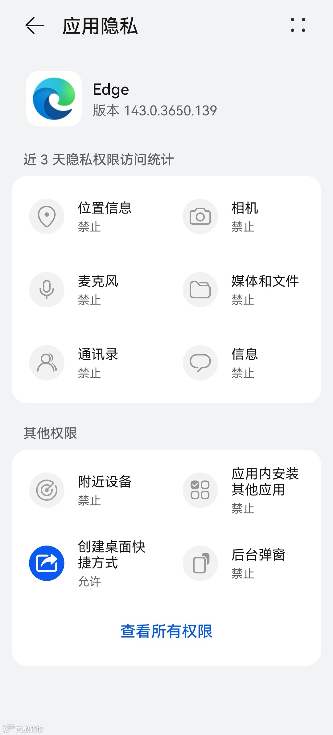 - 进入手机“设置”→“应用和服务”→“权限管理”,授予 Edge 创建桌面快捷方式权限