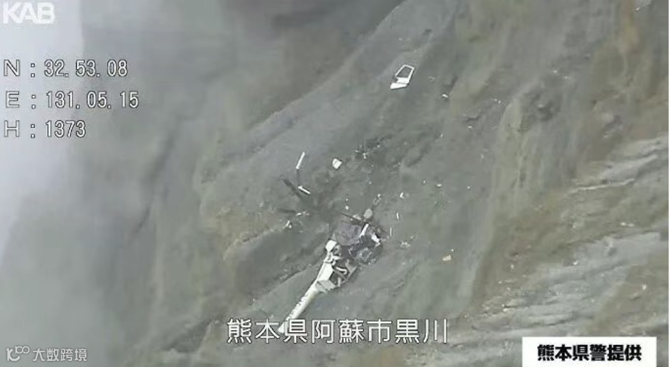 当天下午4时10分,搜救直升机在阿苏中岳第一火山口北侧陡峭斜坡发现严重损毁的机体。现场画面显示直升机已解体,残骸散落,疑似机舱门部件位于附近。但因地形陡峭湿滑、空间狭窄,且需实时监测二氧化硫浓度(防范超标风险),救援人员面临“看得见、够不着”的困境。
