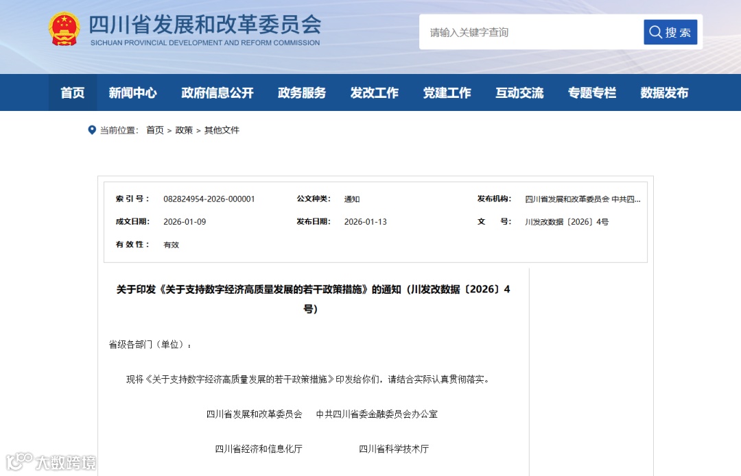 关于印发《关于支持数字经济高质量发展的若干政策措施》的通知(川发改数据〔2026〕4号)