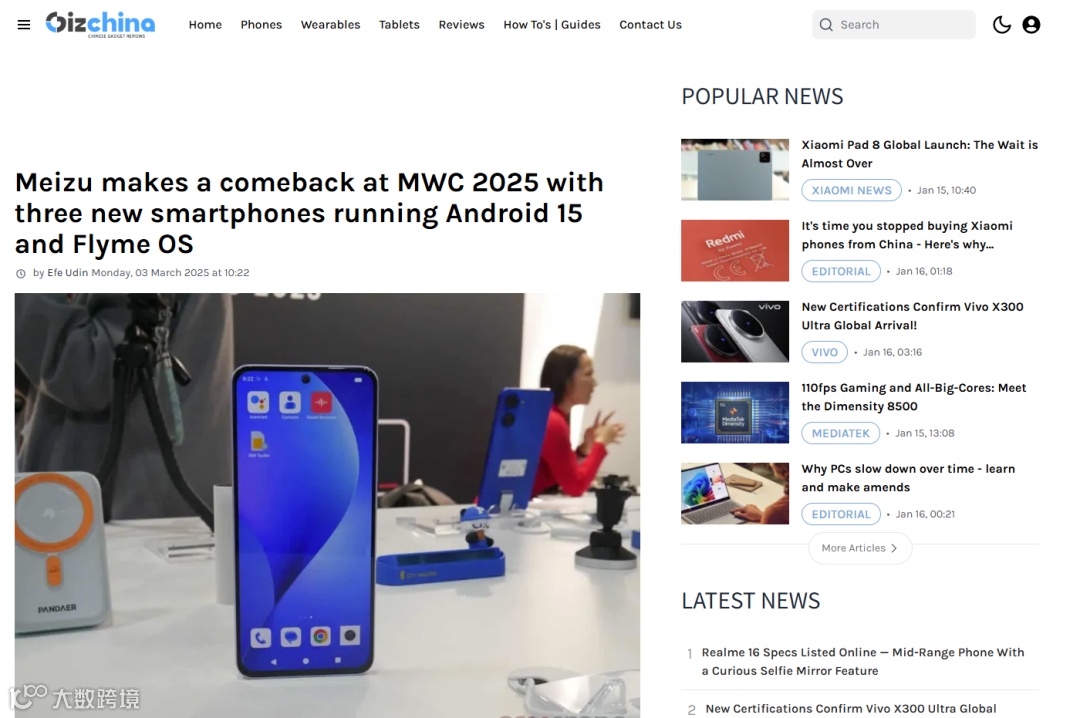 魅族通过覆盖Yahoo及多家区域媒体的全球新闻稿发布,结合Gizchina等专业消费电子博客的现场探展内容及赞助合作,也在展会期间成功吸引了大量国际关注。