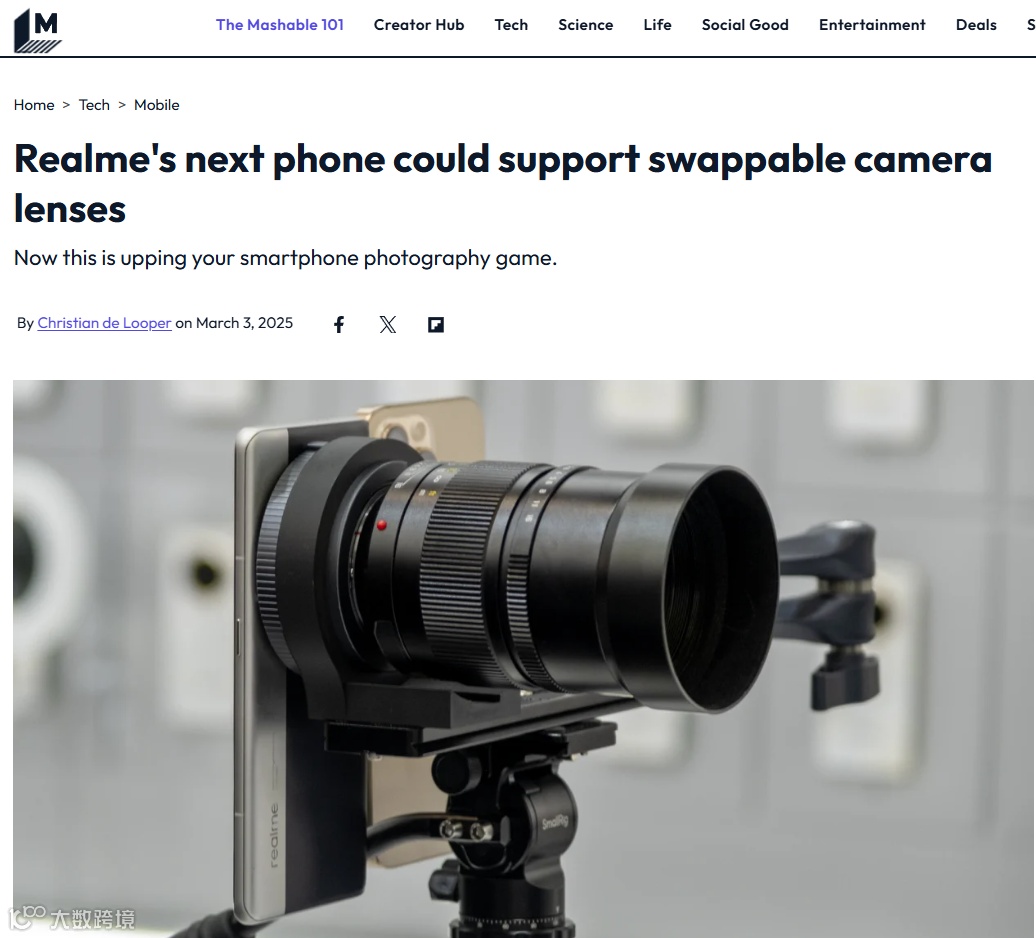比如Realme凭借支持外置长焦镜头的创新设计,获得Mashable、The Verge等北美顶级科技媒体重点报道,并进一步被Android Headlines、PetaPixel等垂类数码测评网站深入解读,显著提升了参展期间的全球声量。