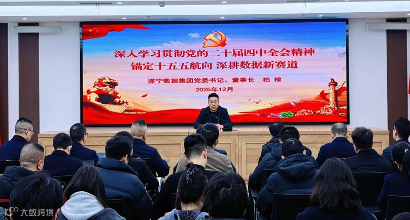 2025年12月29日,遂宁数据集团有限公司召开“深入学习贯彻党的二十届四中全会精神—锚定十五五新航向,深耕数据新赛道”专题学习会。集团党委书记、董事长柏棣做主题宣讲,强调要全面学习领会党的二十届四中全会和省委十二届八次全会精神,紧紧围绕市委市政府“实业兴市,引客入遂”战略部署和构建“5+1+N”现代产业体系要求,坚定发展信心,勇担使命责任,以效率革命为引领,全力推动集团在“十五五”时期实现高质量发展,为遂宁数字化转型和现代化建设贡献数据力量。