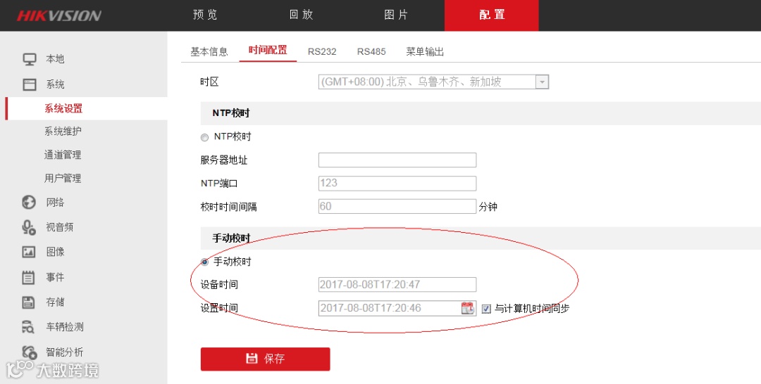 - 进入 配置 → 系统 → 系统设置 → 时间配置;