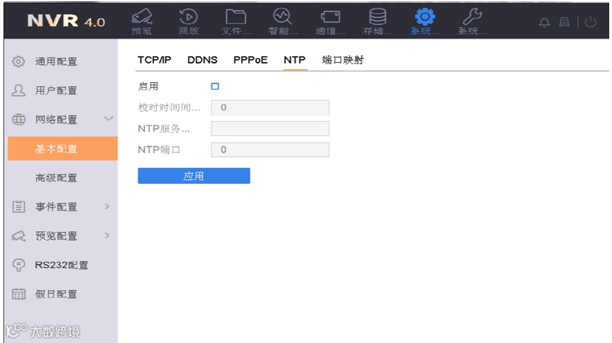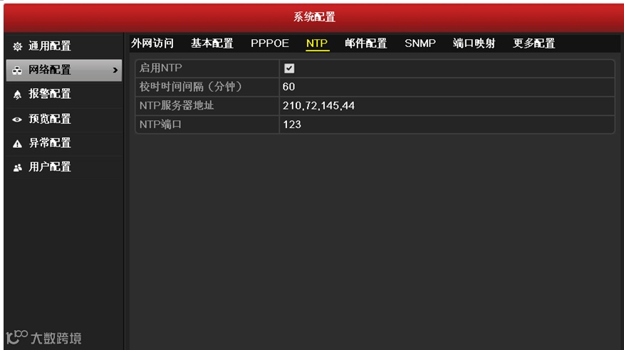- NVR3.0:主菜单 → 系统配置 → 网络配置 → NTP