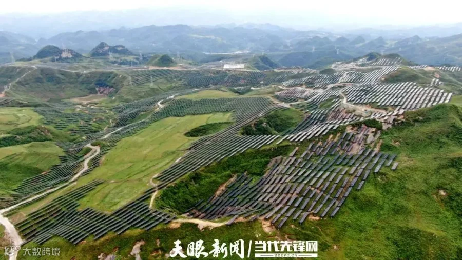 资源富集不只在地下,也体现在磅礴乌蒙的崇山峻岭之上。大风车吞风吐电,光伏板延绵起伏,新能源产业在黔西北大地多点开花。