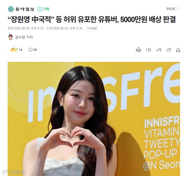 法院认定,相关视频不仅严重损害张元英个人名誉,也对IVE组合形象及Starship娱乐正常经营造成负面影响。结合频道订阅量、点击数据及媒体传播情况,认定其内容产生实质性社会影响。