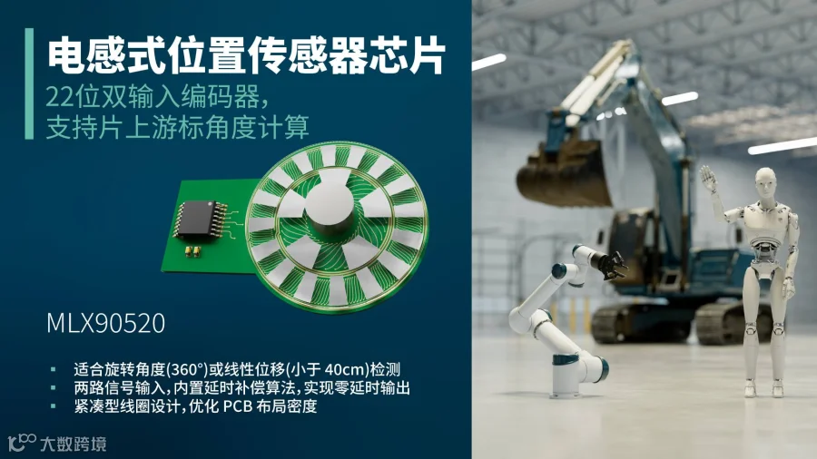 全球微电子工程公司Melexis宣布,推出一款具备22位高分辨率的电感式编码器芯片——MLX90520。该市场标杆级产品可完美适配旋转及线性运动场景,能够充分满足机器人以及直径范围在20至200毫米的大机械关节对高精度、高性价比位置检测的需求。