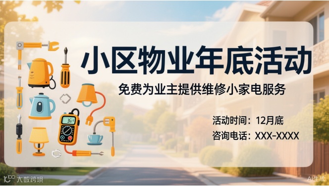 方法与原理:在电子屏、电梯间等小区大屏制作“新年倒计时”,同时发布公告:“12月31日23:59前缴纳2025年度物业费,可全免违约金;1月1日0点起系统恢复每日1‰滚动。”并持续向未缴费业主进行通知直至元旦,利用对资金成本上涨的厌恶,以及“倒计时”带来紧迫感,促进业主缴费;同时,元旦倒计时在已缴费业主看来,只是普通的节庆装饰,不会引起其他业主反感。