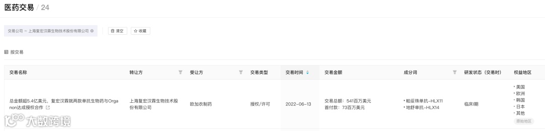 总金额超 5.4 亿美元,复宏汉霖就两款单抗生物药与 Organon 达成授权合作