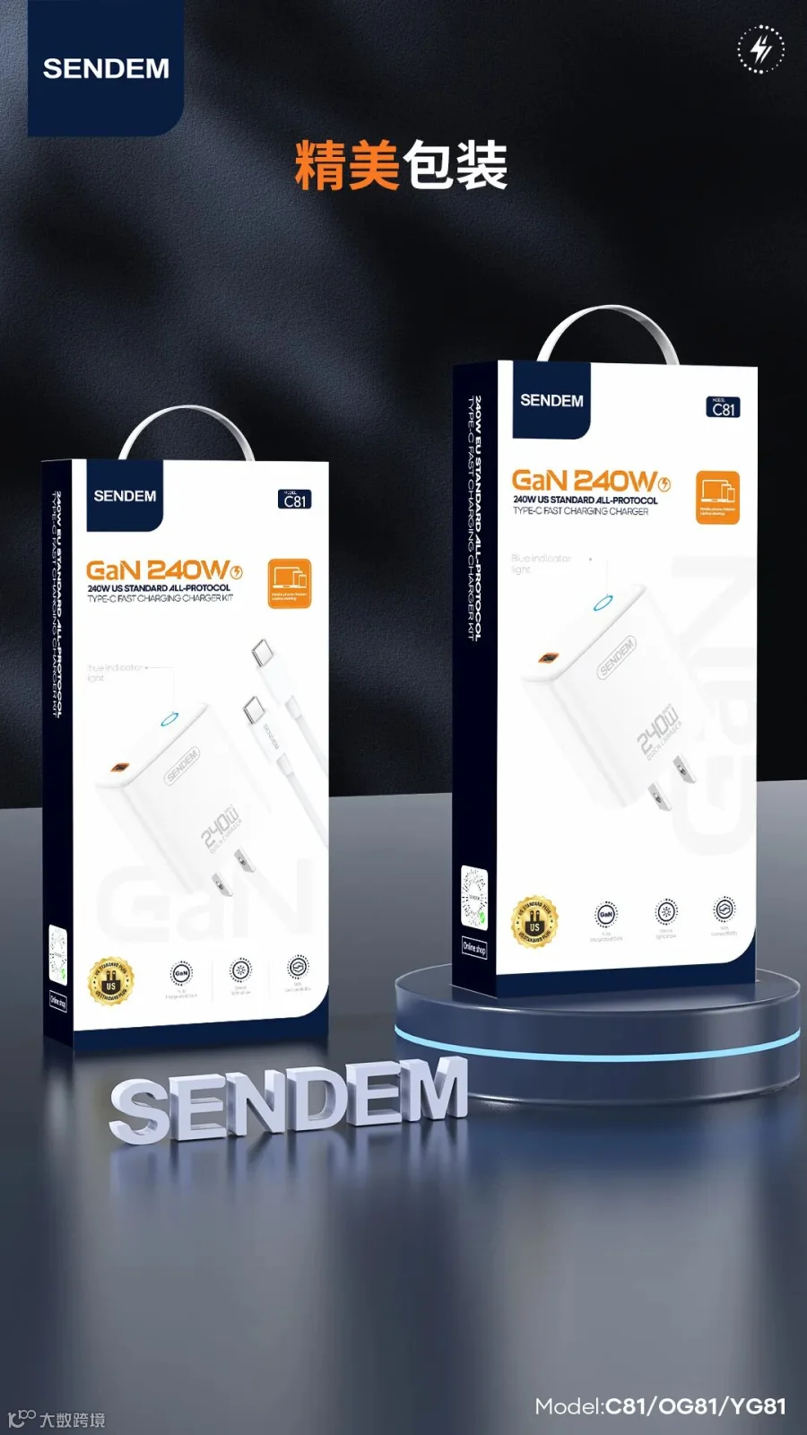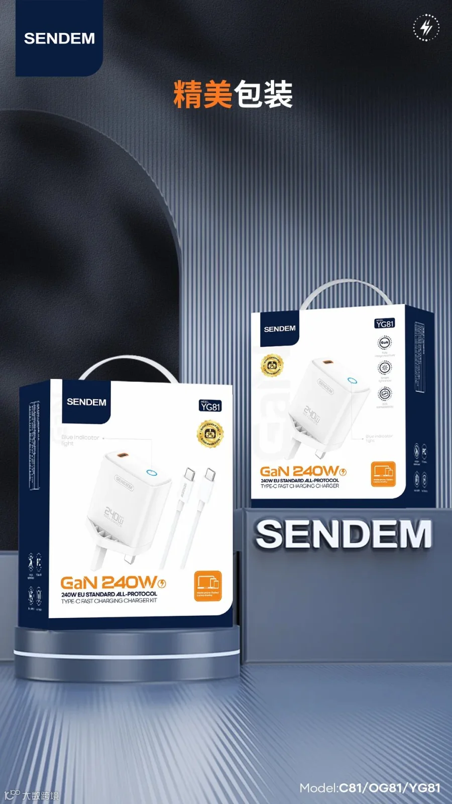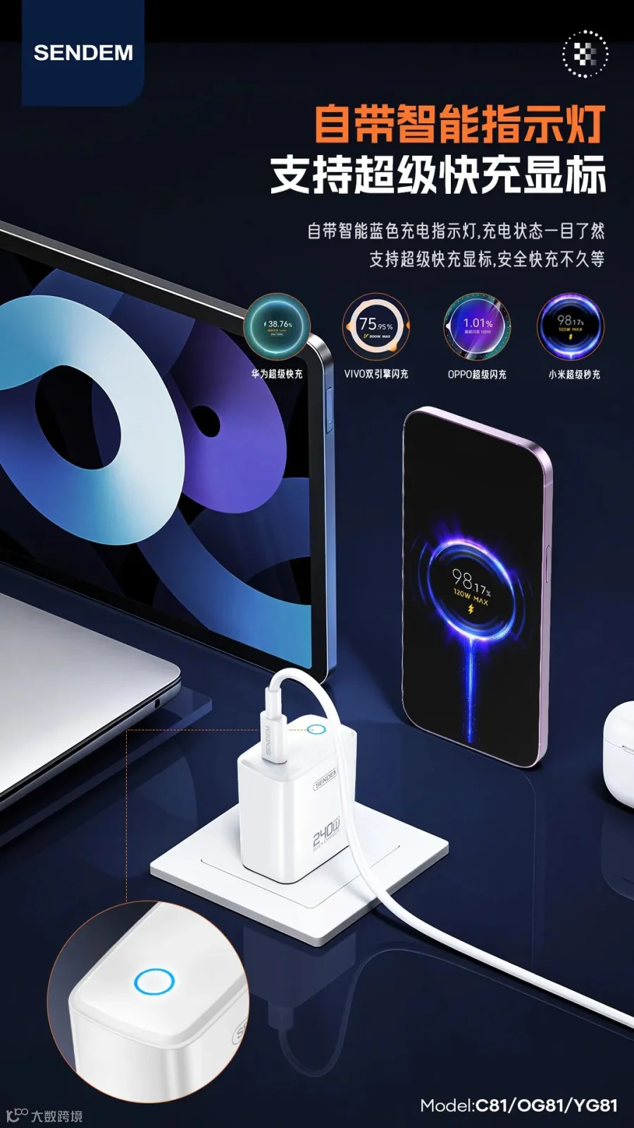 YG81 灯显240W英规全协议C口快充充电器