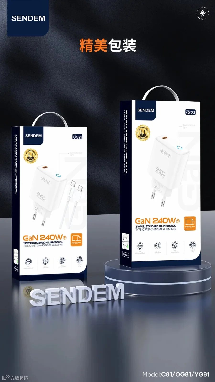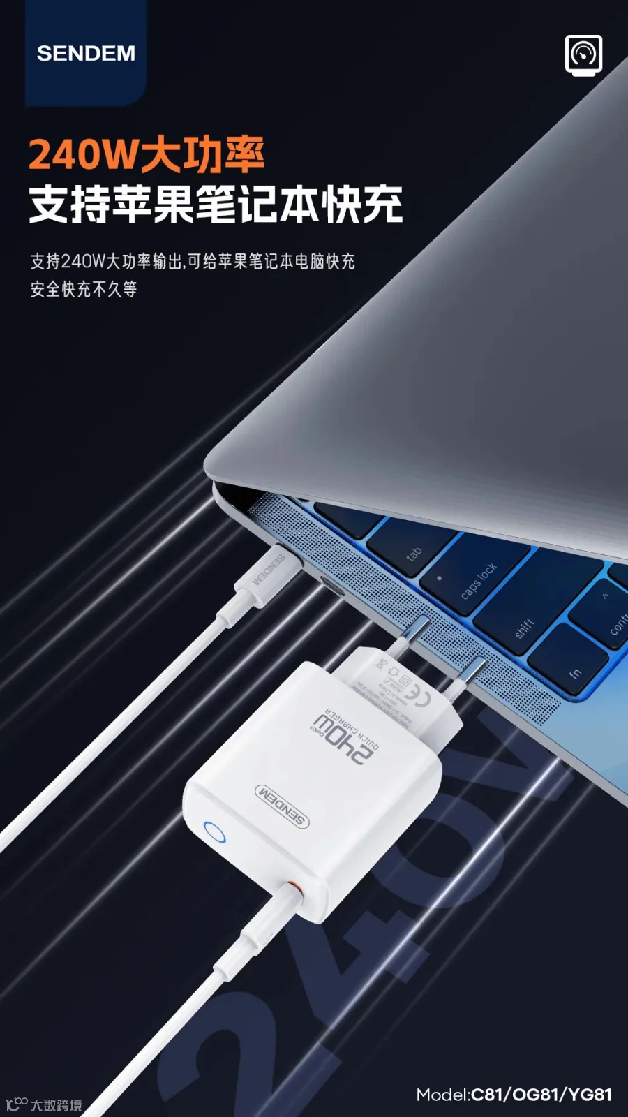 OG81 灯显240W欧规全协议C口快充充电器