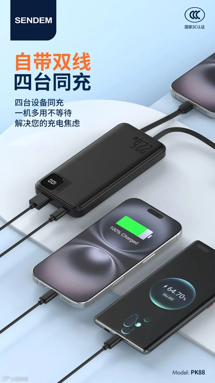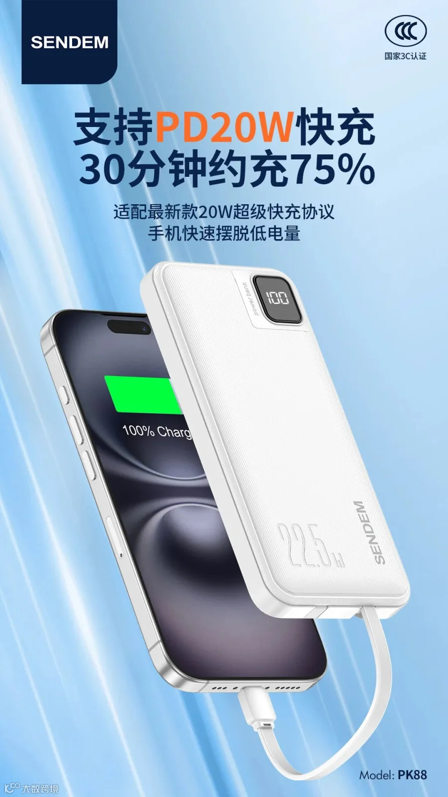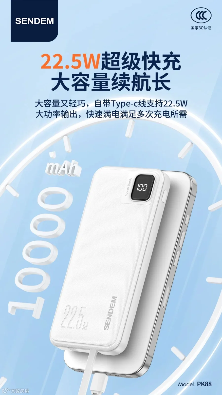 ✨ PD 20W + 22.5W, 10000mAh real capacity