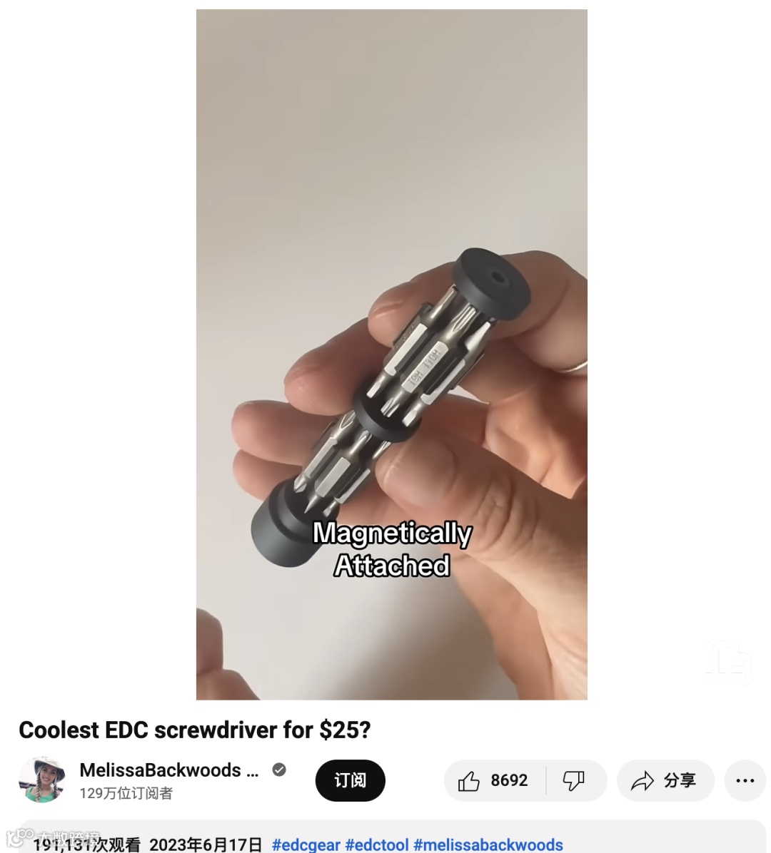 Melissa 作为 “EDC 工具达人” 的专业背书,为 HOTO 海外推广带来多重价值。她的推荐精准触达对刀具维护、EDC 工具有需求的目标群体,提升品牌曝光。此外,Melissa 的推荐还助力 HOTO 塑造专业、实用的品牌形象,粉丝间的口碑传播更让品牌影响力持续扩散,成功实现品牌曝光、用户信任与销售转化的协同增长 ,可以说是让推广效果“事半功倍”,如果想了解更多关于Melissa的数据,不妨到后台戳戳我们吧~