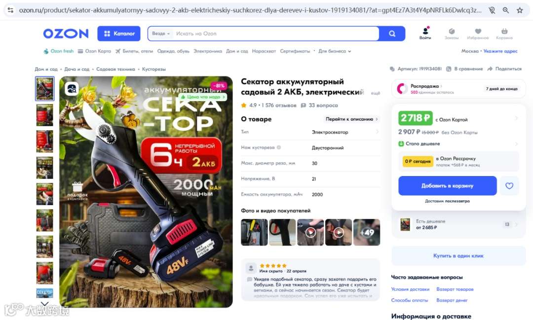 其中,花园修剪工具、园艺工具套装、花盆和花园装饰以及园艺手套和防护用品销量可观,位于Ozon园艺类热销榜。
