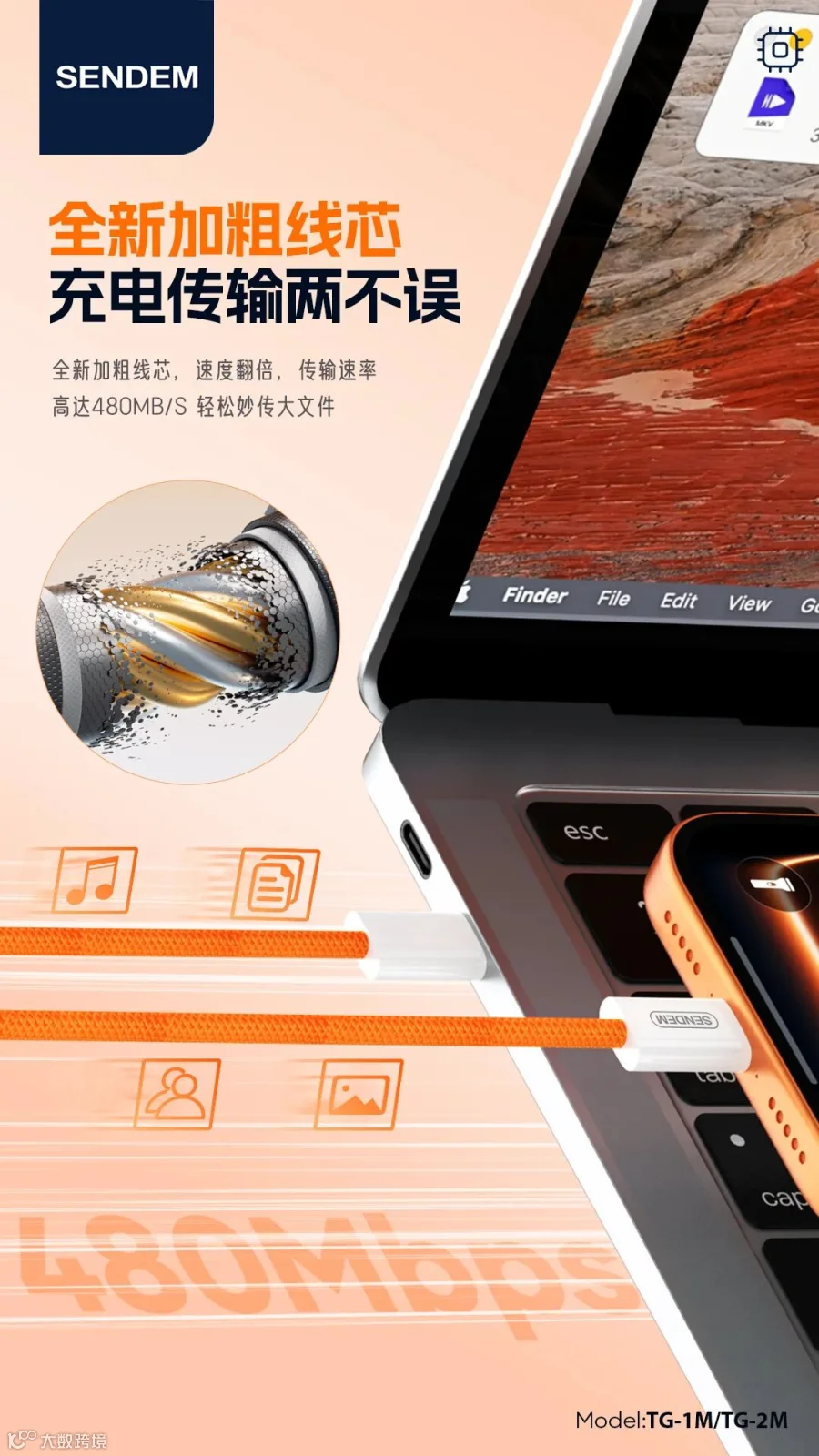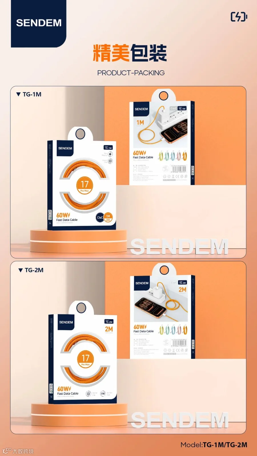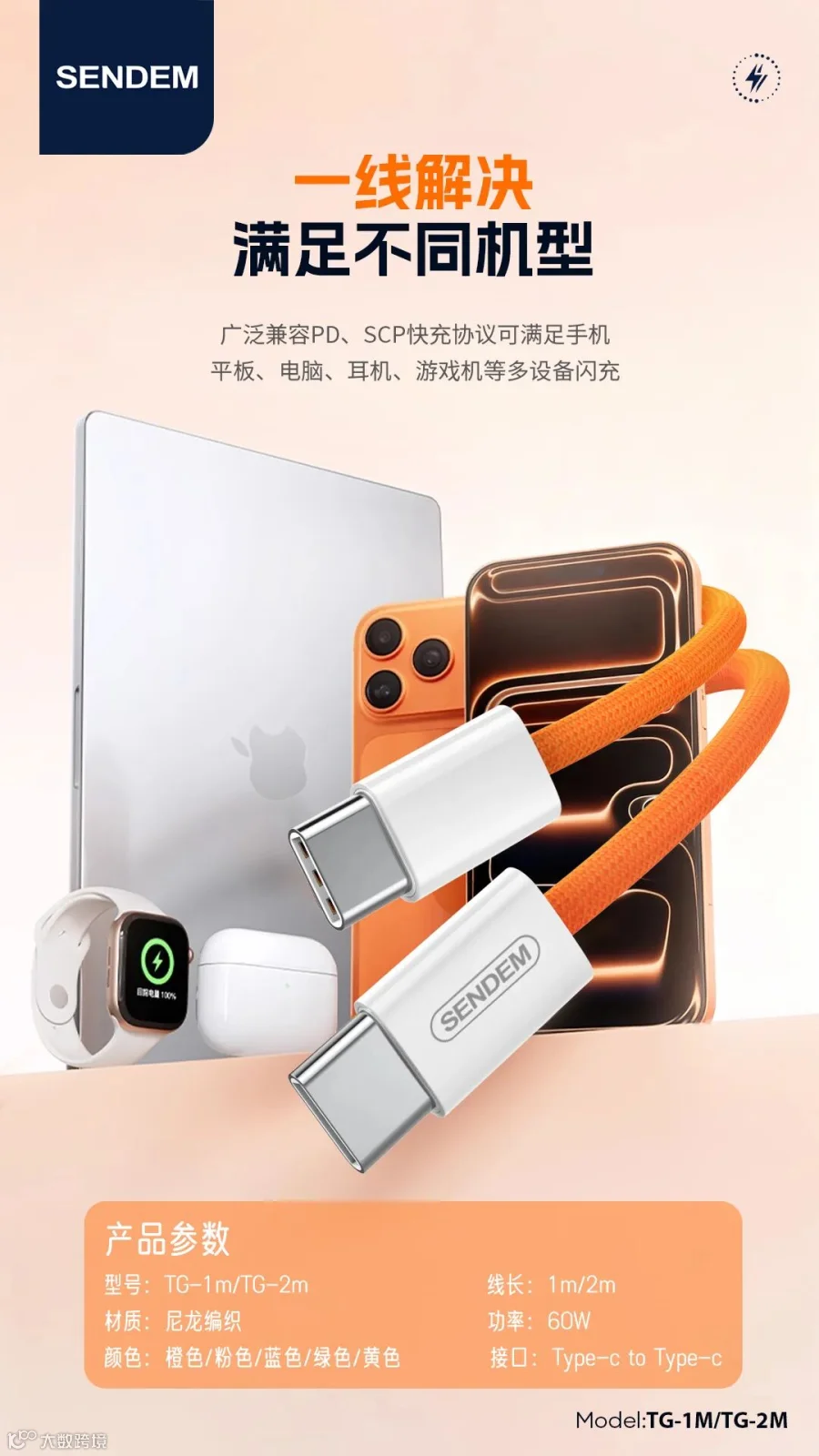 TG-2M原装系列C TO C苹果60W快充编织线