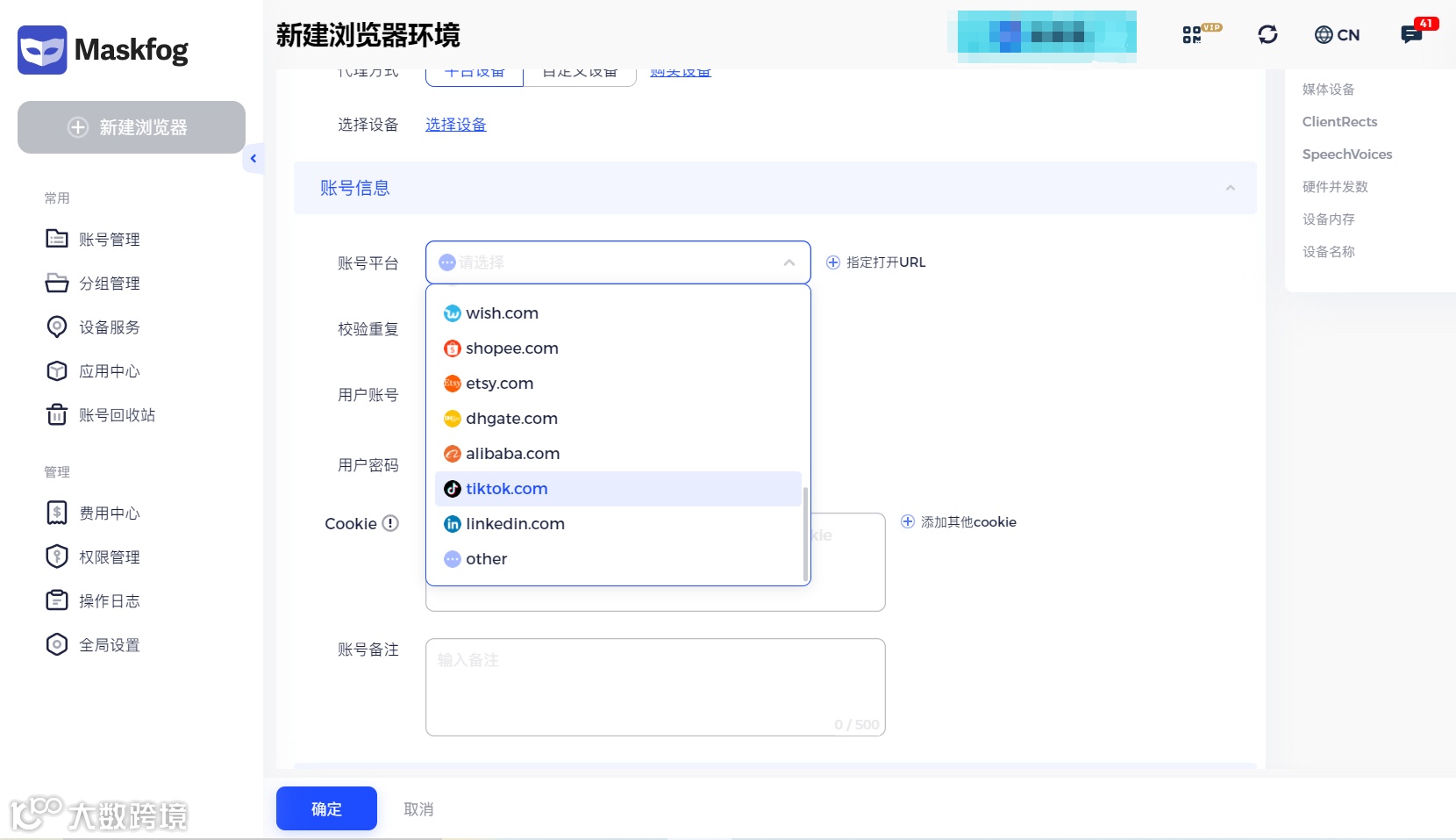 对应投放地区IP配置住宅代理IP,Maskfog自带纯净独享设备IP,不需要额外寻求第三方。