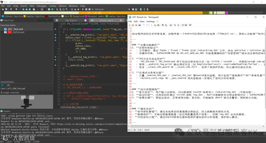 Windows平台需patch ida.dll和ida32.dll,成功输出如下: