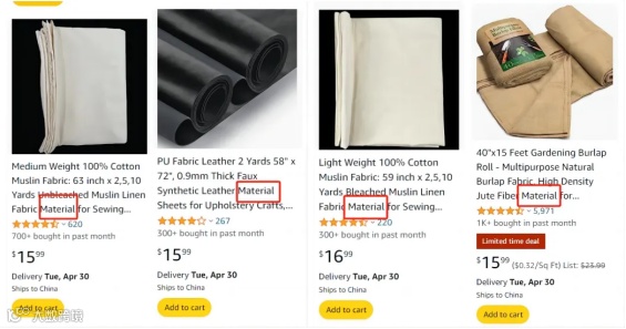 在亚马逊上检索“Material”这个词,在listing上使用该商标词的,竟然高达10W+产品链接,若是该商标所有者提起诉讼,将会有大批卖家被“一锅端”。