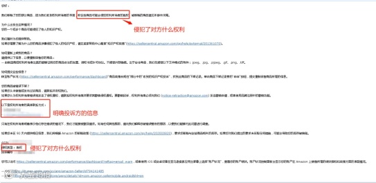 一般这两个问题的答案都能在亚马逊发来的侵权邮件中找到,如投诉方的联系方式、ASIN号、投诉原因等。