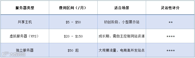 不同类型服务器对应不同预算和运维要求,选择时要结合网站访问量、内容规模和运营阶段。