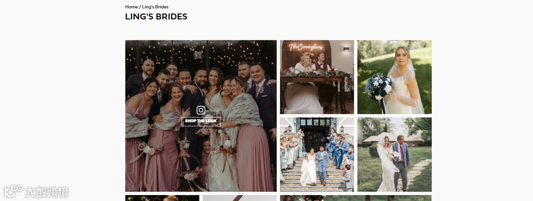 此外,网站还设有"Ling's Bride"用户生成内容(UGC)板块,专门展示真实婚礼案例。这一设计具有双重优势:其一,简洁直观的界面帮助新人快速挑选装饰,简化决策流程,有效提高转化率;其二,通过呈现真实用户的婚礼风采,不仅传递了品牌倡导的美好时刻,更以生动案例增强品牌可信度与感染力。
