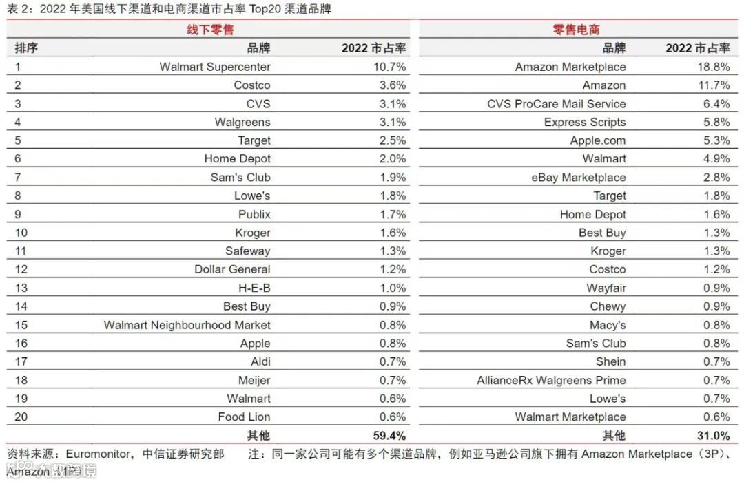 按照2022年美国线下渠道和电商渠道占有率来说,Amazon也只是一部分了。其他的占有也很高。