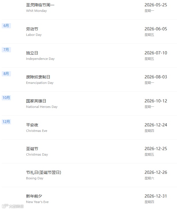- 进口许可证(Import License):针对食品、医疗器械、动植物产品等受限品类,需向巴哈马工业和贸易部申请,有效期3个月,审核周期2–3周。