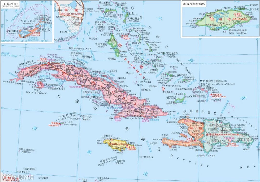 巴哈马国(The Commonwealth of The Bahamas),简称“巴哈马”,位于美国佛罗里达州东南、古巴东北海域,由西北向东南延伸约1223公里,宽96公里。全国由700多个岛屿及2400多个珊瑚礁组成,其中30个岛屿有人居住。属亚热带气候,年均温23.5℃,年均降水量约1000毫米。