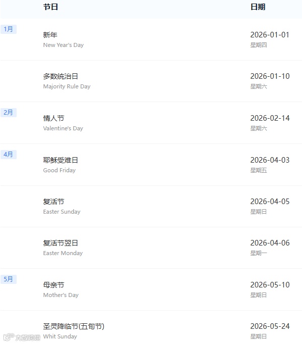 - 官方语言:英语。