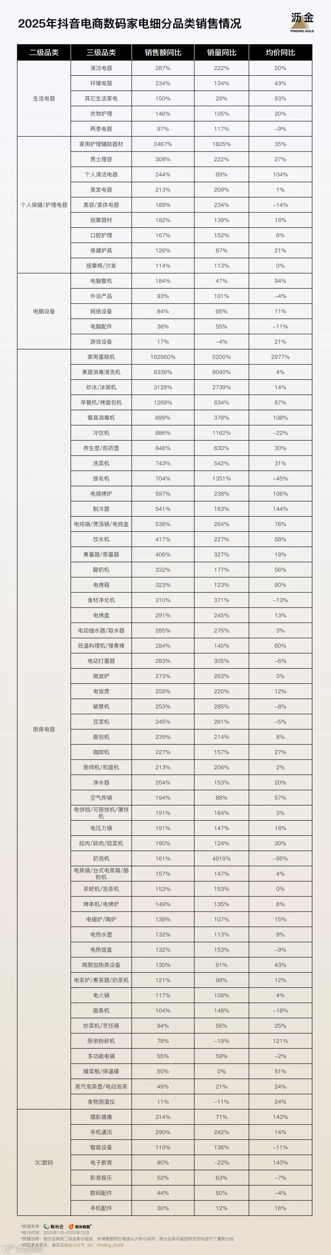 沥金联合有米有数,基于2025年抖音电商各细分品类数据,挖掘超越短期波动的底层趋势。