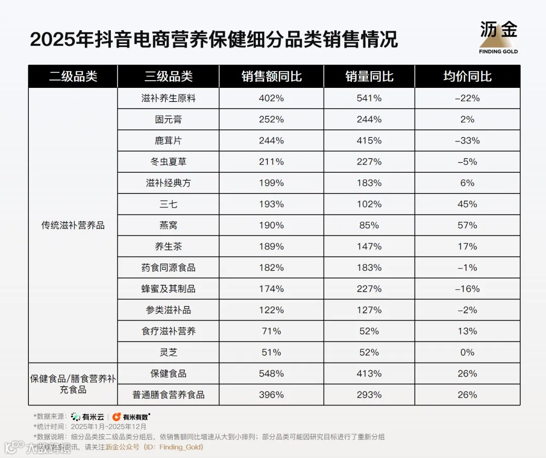 主打美白、抗衰、补气血等女性高度关注功效的产品,增长尤为亮眼。