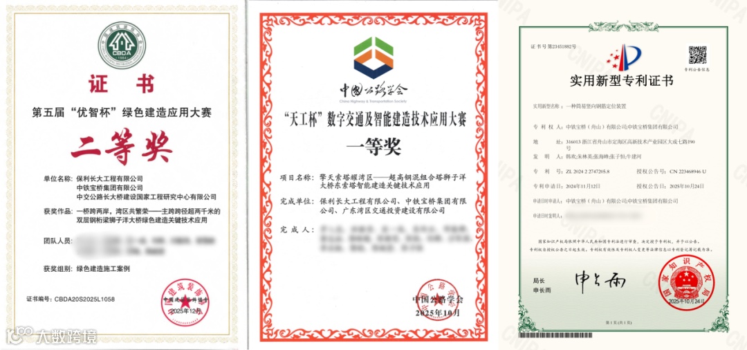 项目累计申报国家专利8项,参与编制行业标准1项,荣获2项微创新大奖及国家级绿色建造大赛二等奖。形成可复制推广的绿色智能建造技术体系,涵盖钢结构智能制造、智能化施工装备研发、数字化管理平台建设等多个领域,为行业技术进步贡献“宝桥智慧”,生动诠释新质生产力在重大工程领域的实践价值。