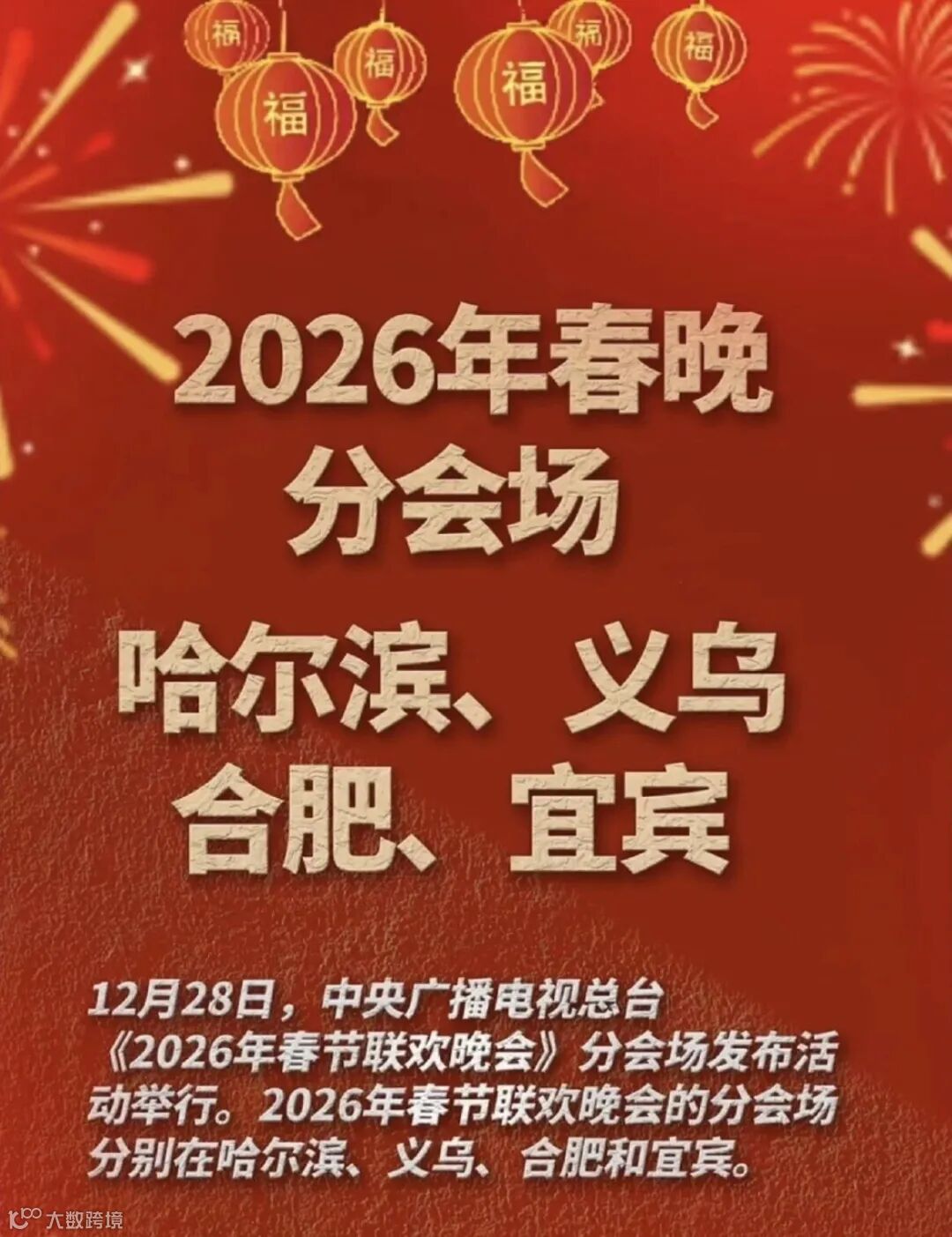 四座城市虽各有侧重,却共同呼应着2026春晚“骐骥驰骋 势不可挡”的时代主题。从哈尔滨的冰雪韧性到义乌的开放活力,从合肥的科创突破到宜宾的绿色发展,分会场的选择既是对城市特色的精准把握,更是对新时代中国发展成就的集中展现。主分会场将通过艺术化联动实现气韵贯通,让文化味、科技感与国际范交织共生。