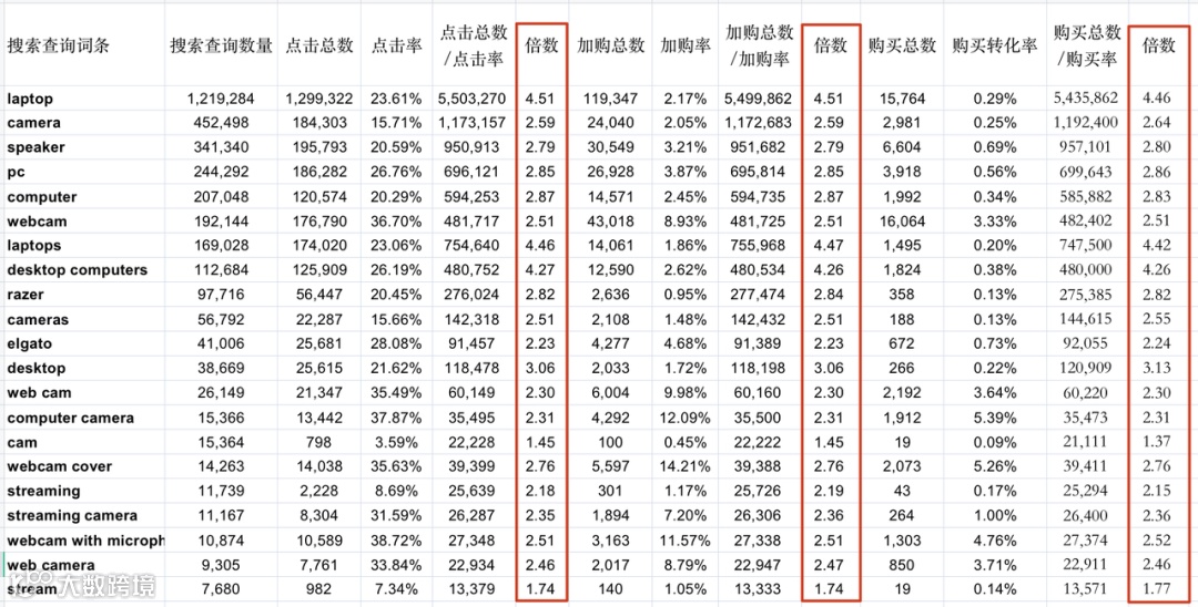 猜测并未包含移动端还有另一个原因,是在2021年亚马逊在广告数据里突然增加了移动端的数据,导致大家后台的转化率数据突然暴跌。所以我们也怀疑,ABA数据里,可能只包含PC端的数据。