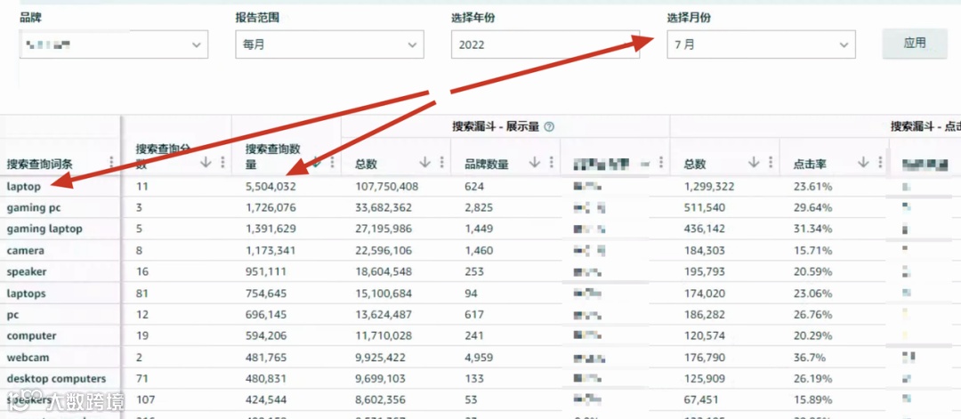 同样是22年7月份的数据,可以明确的看到,同一个词laptop的搜索查询数量比1.0版本的时候大了好几倍:1.0版本是1,219,284,2.0版本则是5,504,032。