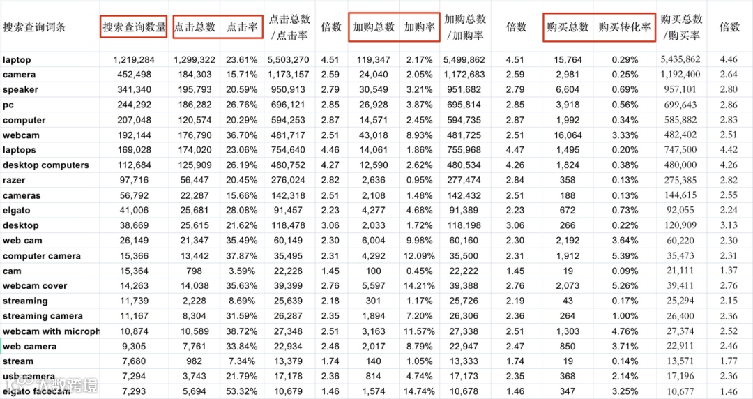 换句话说,ABA、商机探测器、搜索词表现1.0这三个亚马逊后台的模块给出的数据,背后对应的都不是搜索量。直到搜索词表现2.0出现的时候,亚马逊给出的数据才看起来“像”搜索量。