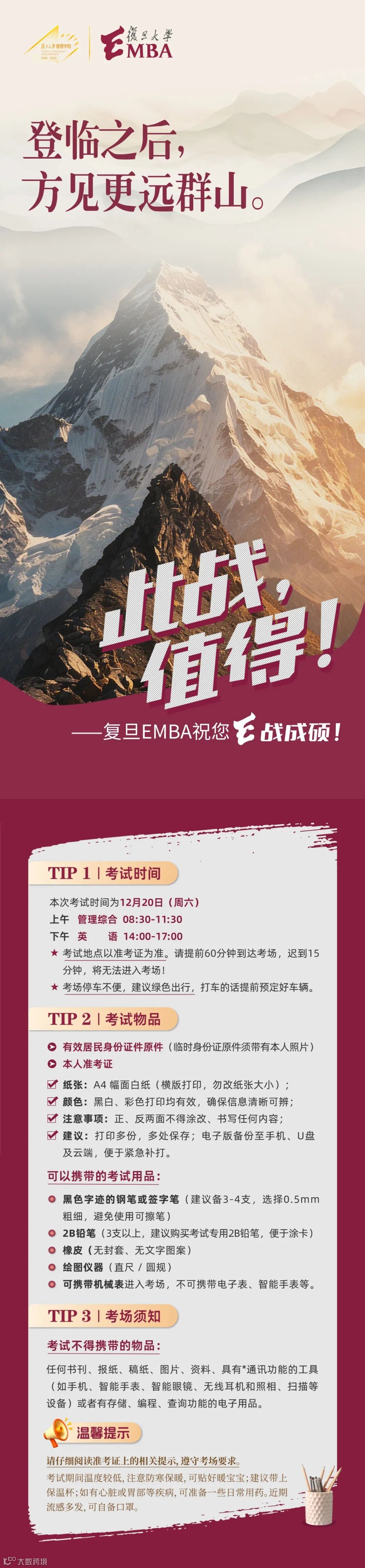 复旦大学EMBA项目始终以培养“将帅之才,致胜之道”为己任,在AI与科创重塑商业格局的背景下,向内夯实管理科学研究和课程师资建设,向外链接科创与人文生态,以管理赋能科创。以“商道人文,融汇贯通”为目标,为企业决策层传授全球领先的管理思想,激发企业家学生构建先进的管理理念,为校友搭建高端的商业交互平台,与学生一起探究中国商业社会的“致胜之道”。