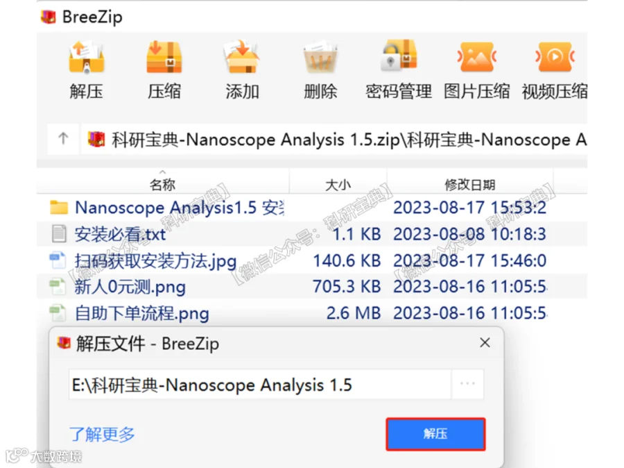 - 解压“科研宝典-Nanoscope Analysis 1.5”压缩包。