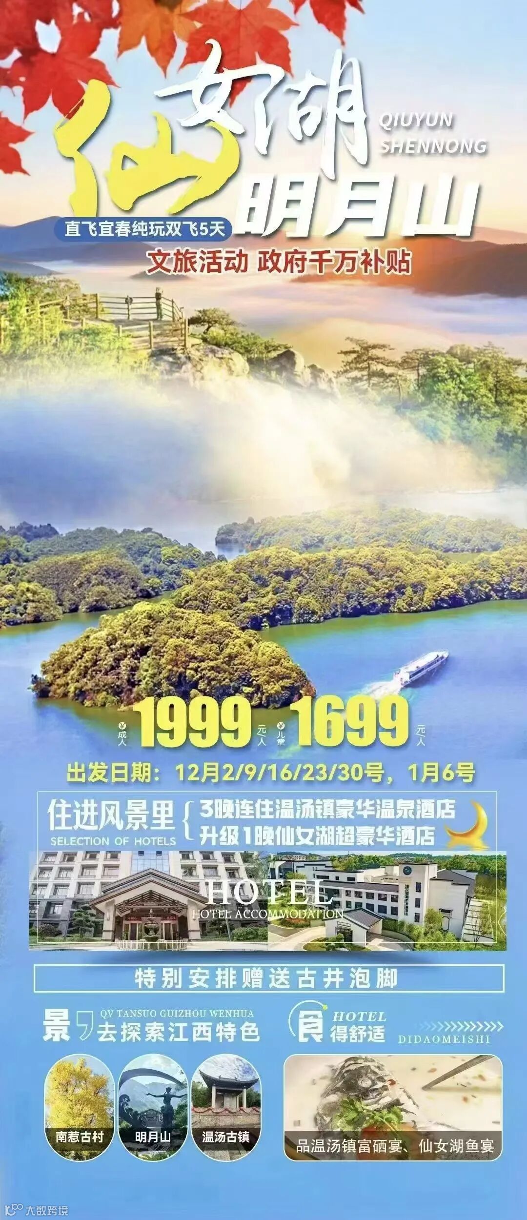 5A明月山、仙女湖、月亮之都宜春、温汤古镇、
