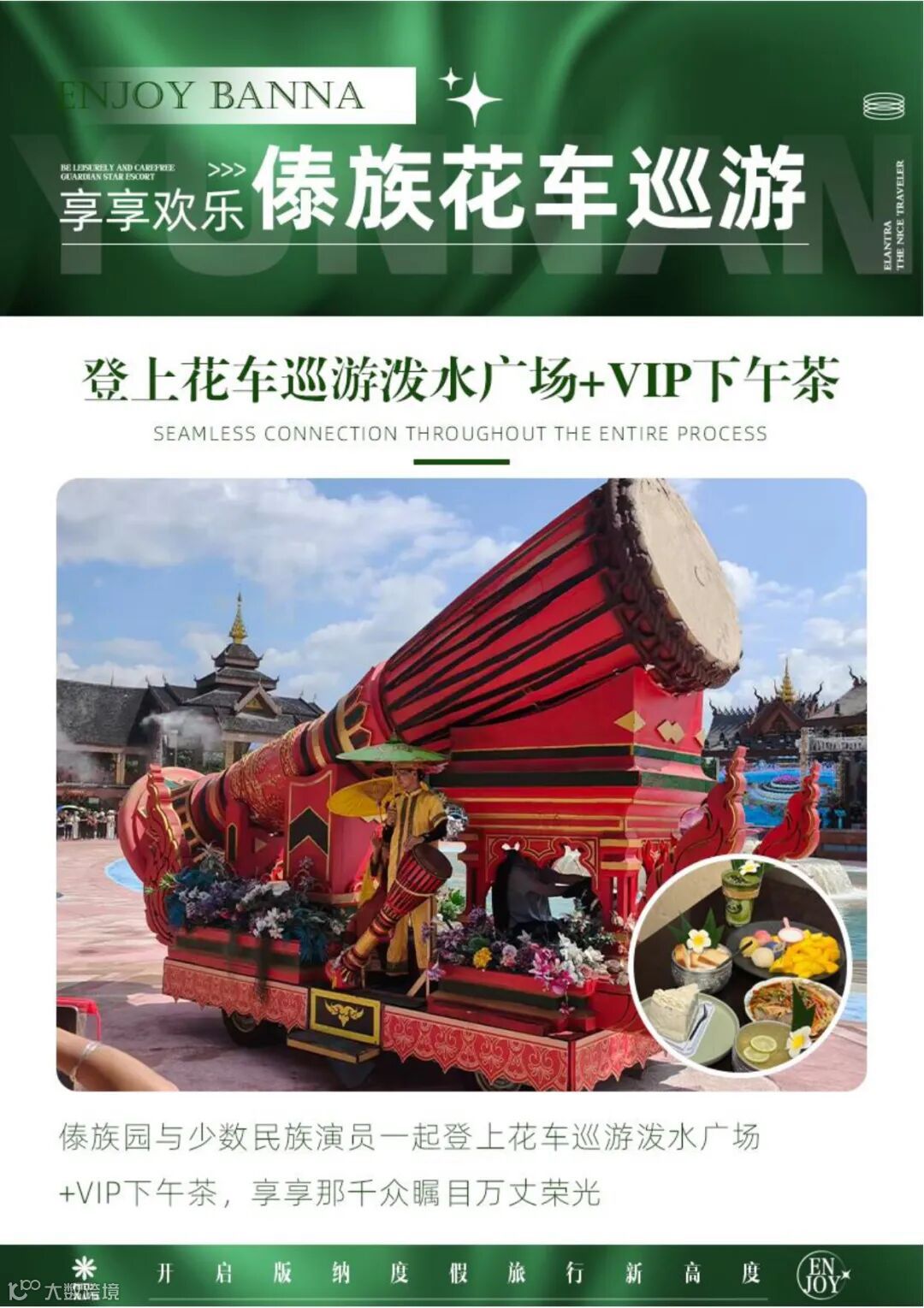 享享体验:傣族园与少数民族演员一起登上花车巡游泼水广场+VIP下午茶+夜游生物多样性