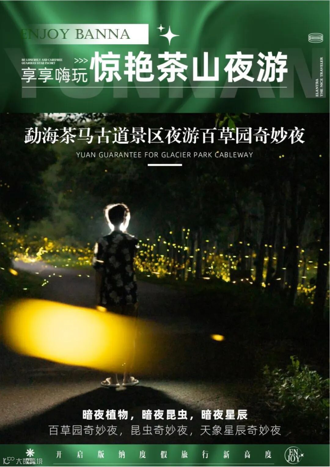 晚上:今晚住在景区雨林茶山里-【天然氧吧别墅别院酒店】,就连呼吸都是茶叶的香味,满足您离尘避世之感,这里有茶、有禅、有景、有美食,回归最纯粹的大自然。住在茶山,很有故事,住在茶山,非常治愈,住在茶山,古道魔幻,住在茶山,甚是童趣!当晚独家赠送【生物多样性夜游-百草园奇妙夜】,茶马古道景区,是完整的生态链,在里面生活的动物植物微生物,鸟类,昆虫数不胜数。由于天气,生活习性等原因,很多动物有昼伏夜出的习惯,所以到了晚上才是和他们相遇和了解生物多样性的最好时机。但是与白天明亮可见的世界不同,黢黑的夜晚常给人以宁静、危险与恐惧之感,多数人在晚上不敢外出活动。由于人类对夜晚与生俱来的恐惧,人们对夜晚的了解是极其缺乏的,外加流传的夜间恐怖灵异故事,让夜晚更加神秘。暗夜植物,暗夜昆虫,暗夜星辰!也称百草园奇妙夜,昆虫奇妙夜,天象星辰奇妙夜!(如遇当天下雨或天气不能安排除外,敬请谅解)。