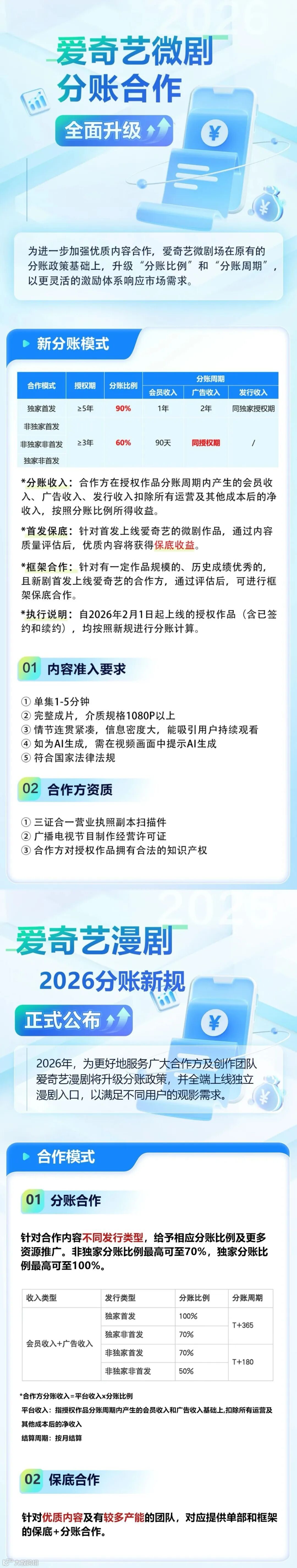 3.爱奇艺升级漫剧、微剧分账,最高分账100%吸引独家内容
