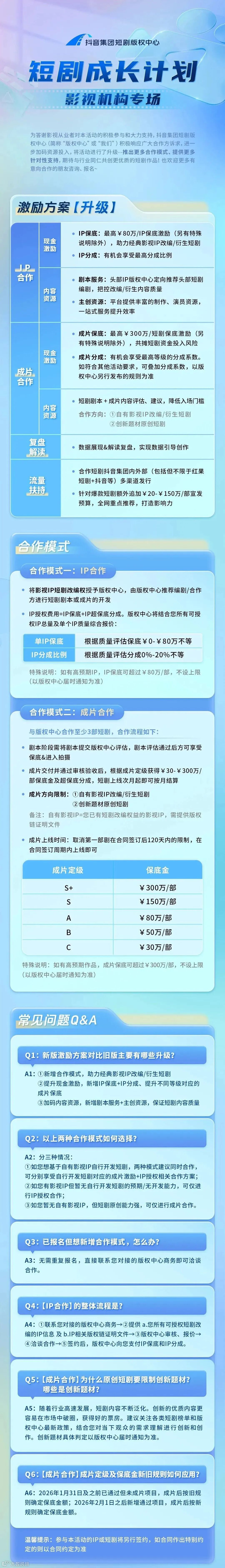 5. 抖音升级影视机构合作:单短剧最高激励300万元
