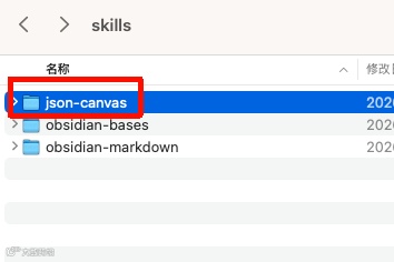 直接把压缩包下载下来,解压之后里面有 3 个 skill ,我们直接把 「json-canvas」复制