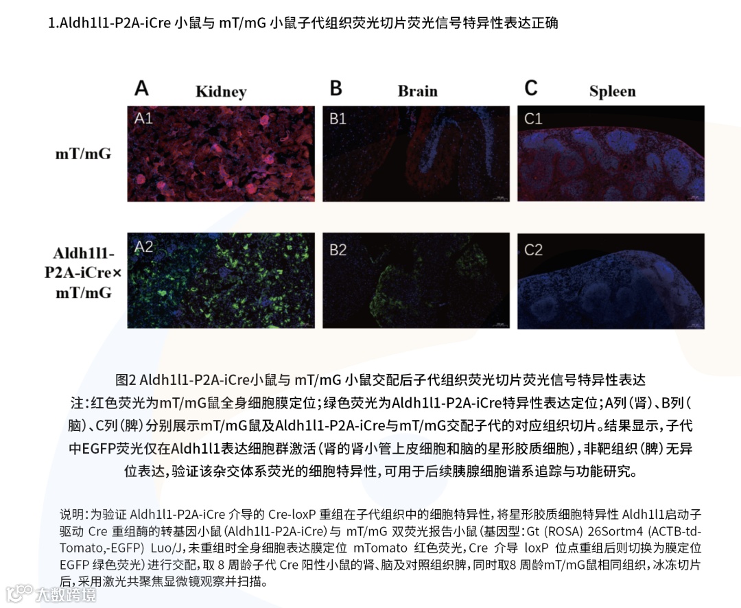P2A 自切割肽可介导 Aldh1l1 与 iCre 蛋白高效分离(切割效率超 90%),确保两者均保持天然活性,避免融合蛋白导致的功能损伤。